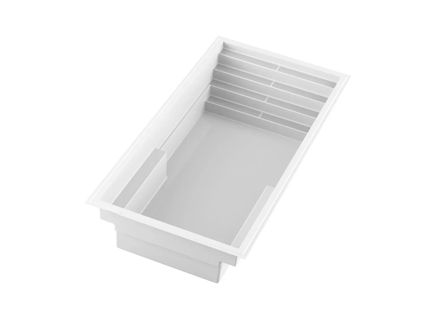 Découvrez la piscine creusée en fibre de verre de format 13x27, un espace généreux conçu pour maximiser votre expérience de baignade. Équipée de bancs latéraux élégants, elle offre à la fois un vaste espace pour nager et des zones confortables pour se détendre.